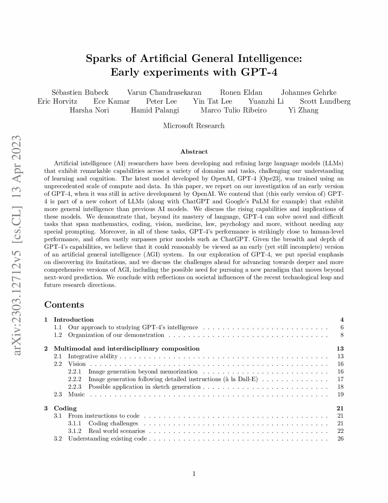 Sparks of artificial general inteligence: early experiments with gpt-4
